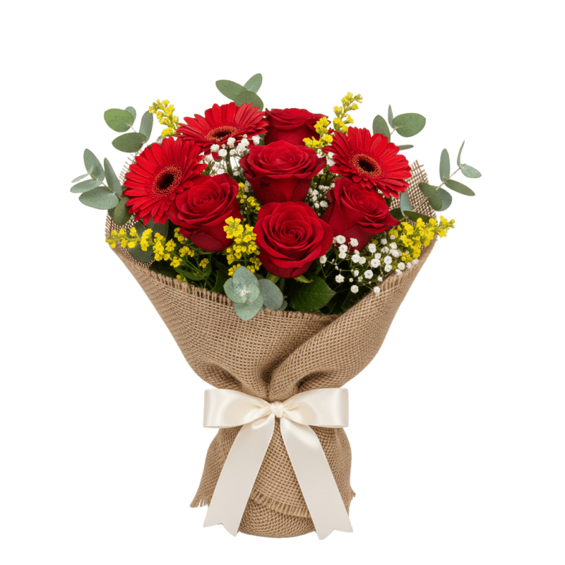 Bouquet for many occasions. Gerbera roses lamb plasterboard and nice packaging.