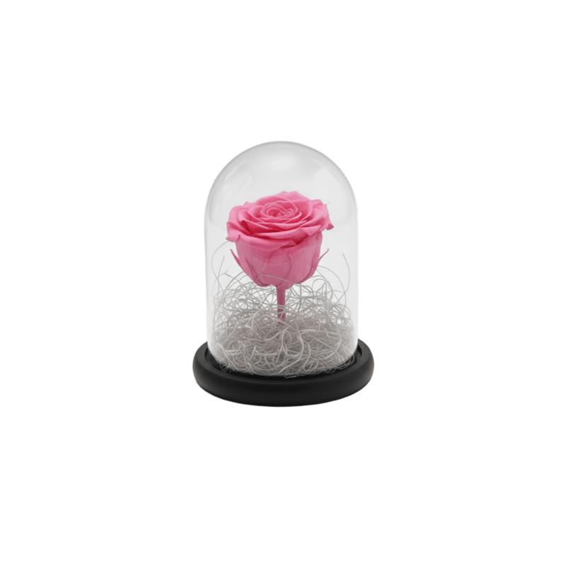 Forever Rose, pink, in a 17cm glass bell